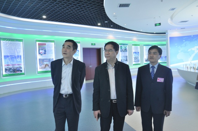圖為中國(guó)醫(yī)藥企業(yè)管理協(xié)會(huì)會(huì)長(zhǎng)郭云沛(左一)一行參觀我公司展廳時(shí)的情景