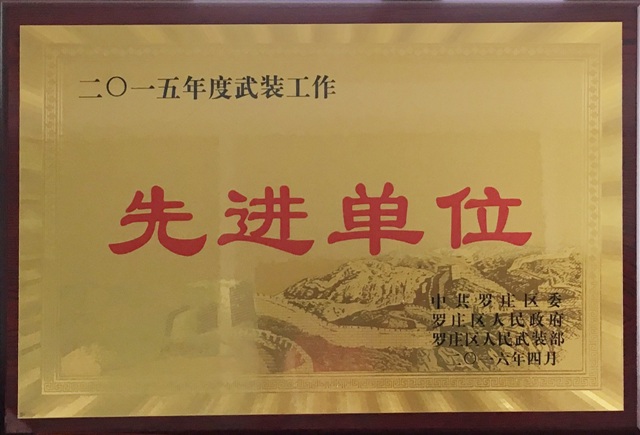 4月19日,羅莊區(qū)武裝工作會議召開。我公司武裝部在羅莊區(qū)武裝工作中表現(xiàn)突出,被授予 “2015年度武裝工作先進單位”、“先進民兵連”榮譽稱號。陳正浩同志被授予“先進專武干部”榮譽稱號。
