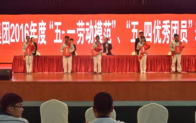 5月4日,公司2016年度“五·一勞動模范”、“五·四優(yōu)秀團(tuán)員”表彰大會在羅欣會堂隆重召開,集團(tuán)部分領(lǐng)導(dǎo)出席了大會并為受表彰人員頒獎。