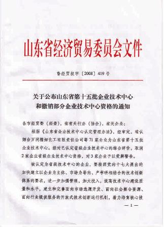 2008年9月11日,山東羅欣藥業(yè)股份有限公司企業(yè)技術(shù)中心被山東省經(jīng)濟(jì)貿(mào)易委員會(huì)認(rèn)定為省級(jí)企業(yè)技術(shù)中心。省級(jí)企業(yè)技術(shù)中心的認(rèn)定,將進(jìn)一步推動(dòng)企業(yè)技術(shù)進(jìn)步和技術(shù)創(chuàng)新,加快科技成果轉(zhuǎn)化,順利實(shí)現(xiàn)產(chǎn)業(yè)化。企業(yè)技術(shù)中心以“立足企業(yè),面向全國(guó)”為宗旨,著力培育核心技術(shù),強(qiáng)化自主創(chuàng)新,高層次、高起點(diǎn)地抓好技術(shù)中心建設(shè),為企業(yè)生產(chǎn)技術(shù)改造,產(chǎn)品升級(jí)換代以及引進(jìn)、消化、吸收國(guó)外先進(jìn)技術(shù)提供技術(shù)支撐;為形成擁有著名品牌和自主知識(shí)產(chǎn)權(quán)、提升企業(yè)國(guó)際市場(chǎng)競(jìng)爭(zhēng)力奠定基礎(chǔ)。