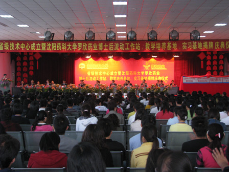 2008年10月23日上午,山東羅欣藥業(yè)股份有限公司在公司四樓禮堂隆重舉行“省級技術(shù)中心成立暨沈陽藥科大學(xué)羅欣藥業(yè)博士后流動工作站、沈陽藥科大學(xué)羅欣藥業(yè)教學(xué)培養(yǎng)基地、沈陽藥科大學(xué)羅欣藥業(yè)實(shí)習(xí)基地揭牌慶典儀式”。沈陽藥科大學(xué)校長吳春福,臨沂市委常委、市委秘書長李峰,市政府黨組成員市長助理宋法亮,沈陽藥科大學(xué)教務(wù)處處長夏煥章,沈陽藥科大學(xué)國際合作研究中心主任高峰,臨沂市食品藥品監(jiān)督管理局局長崔增久,臨沂市衛(wèi)生局副局長劉建廣,臨沂市科技局副局長趙世荀,臨沂市經(jīng)貿(mào)委副主任李儉,全國人大代表、臨沂市人大常委會委員、臨沂市人民醫(yī)院黨委書記、院長尹傳貴,羅莊區(qū)委書記王行華,羅莊區(qū)委副書記、區(qū)長姜玉鵬,羅莊區(qū)人大主任山長青,羅莊區(qū)政協(xié)主席高文堂,羅莊區(qū)經(jīng)貿(mào)局局長謝成琦,羅莊區(qū)科技局局長郭士林,羅莊街道黨工委書記張連勝等領(lǐng)導(dǎo)參加了慶典儀式。參加這次揭牌慶典的還有羅欣公司員工1000余人。同時(shí)這次慶典儀式,得到了各大新聞媒體的大力支持。