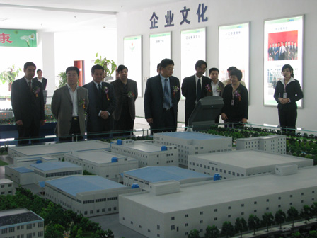 上圖為揭牌慶典儀式結(jié)束后沈陽藥科大學(xué)校長吳春福(前排左四),臨沂市委常委、市委秘書長李峰(前排左二),市政府黨組成員、市長助理宋法亮(前排左三)等領(lǐng)導(dǎo)參觀公司展廳時(shí)的情景