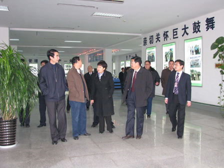 2008年12月4日,臨沂市人大常委會黨組書記、第一副主任朱紹陽(前排右二)、帶領駐臨沂市的全國人大代表和駐市直的部分省、市人大代表一行30余人蒞臨我公司指導工作,羅莊區(qū)委副書記、代區(qū)長劉淑秀(前排右三)、羅莊區(qū)人大常委會主任山長青(前排左一)等領導陪同,觀看了公司介紹剪輯片并參觀了公司展廳,對公司的發(fā)展運營情況做了詳細了解。