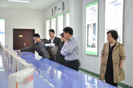 上圖為重慶醫(yī)藥(集團(tuán))股份有限公司藥品分公司總經(jīng)理蔣麗(右一)一行參觀公司展廳時(shí)的情景