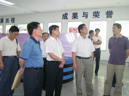 上圖為臨沂市人事局局長密守勇(前排右二)等領(lǐng)導(dǎo)參觀展廳時的情景