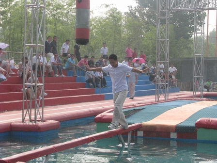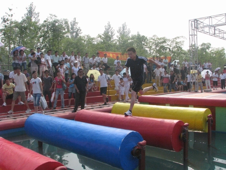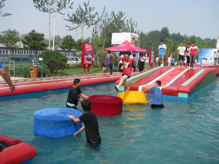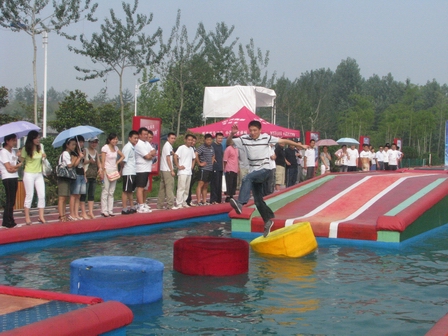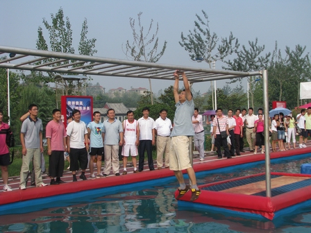 在集團辦公室的精心準備下,全體市場人員集體乘車前往臨沂市知春湖參加全運向前沖拓展活動。在員工們的歡聲笑語中,大家很快來到了知春湖,優(yōu)美的環(huán)境與清新的空氣頓時讓所有員工感覺到精神清爽。隨后活動開始,員工玩的興高采烈,場上不時傳來大家在拓展賽道上的呼叫聲與跌落在水中的歡笑聲,傳送帶、水上漂浮、大轉(zhuǎn)輪、獨木橋、扣籃,在電視上看似簡單容易的一道道關(guān)卡,在參與者的腳下,卻是那么地不容易,熔煉了大家的意志。整個活動賽場經(jīng)主持人的穿針引線,分解成了一個個詼諧歡樂的鏡頭,讓人流連忘返。
