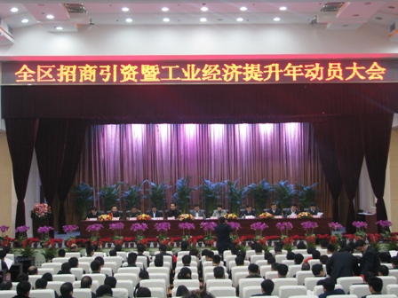 上圖為羅莊區(qū)招商引資暨工業(yè)經濟提升年動員大會現(xiàn)場