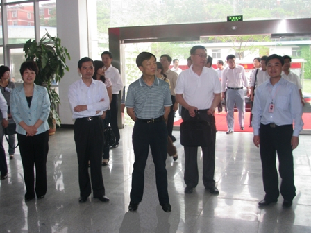 上圖為國(guó)家統(tǒng)計(jì)局工交司副司長(zhǎng)周學(xué)文(前排左三)一行參觀(guān)公司展廳時(shí)的情景