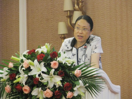 上圖為康寶集團(tuán)市場(chǎng)總監(jiān)李燁焮女士在會(huì)上介紹企業(yè)情況