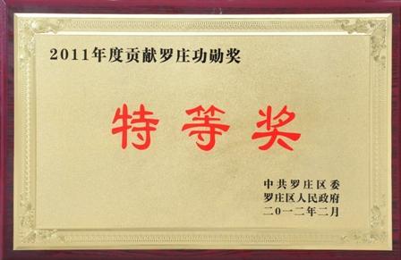 羅欣集團(tuán)榮獲“2011年度貢獻(xiàn)羅莊功勛獎(jiǎng)特等獎(jiǎng)”、“2011年度創(chuàng)新管理進(jìn)步獎(jiǎng)金獎(jiǎng)”和“2011年度發(fā)展羅莊建設(shè)獎(jiǎng)銀獎(jiǎng)”等榮譽(yù)(2012-2-9)