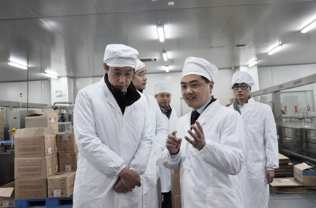 上圖為美國華平投資集團董事總經(jīng)理孫強(左二)一行參觀公司展廳時的情景上圖為美國華平投資集團董事總經(jīng)理孫強一行參觀車間時的情景