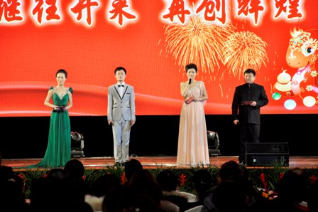 新春的歌,新春的舞,聯(lián)歡會(huì)在舞蹈《鼓舞羅欣》的喜慶祝福中拉開了序幕,演出現(xiàn)場(chǎng)亮點(diǎn)紛呈,高潮迭起。斗志昂揚(yáng)的《安徽?qǐng)F(tuán)隊(duì)銷售戰(zhàn)歌》、高亢激昂的《青藏高原》、溫婉甜美的《煙花三月下?lián)P州》、地方特色的《沂蒙山小調(diào)》、動(dòng)人心弦的《如果沒有你》等一支支動(dòng)聽的歌曲描繪著不同的美好意境;而小品《實(shí)誠人》、相聲《我的夢(mèng)想》、武術(shù)《功夫》、逗趣二人轉(zhuǎn)、父女檔雙簧的精彩演繹,則為我們獻(xiàn)上了一場(chǎng)別開生面的視覺大餐。