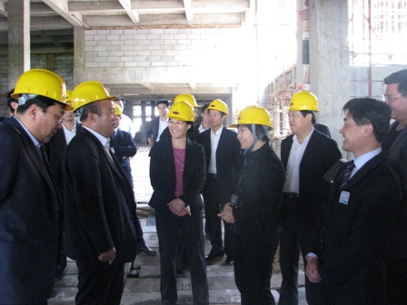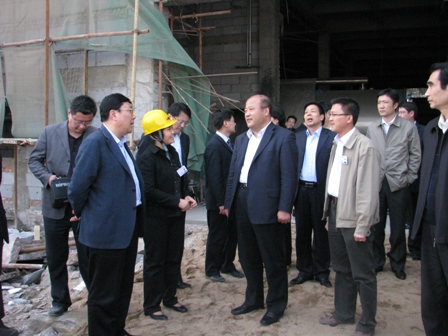上圖為公司總經理李明華(左二)在項目建設現(xiàn)場向市委書記、市人大常委會主任張少軍(前排右二)匯報項目建設情況。