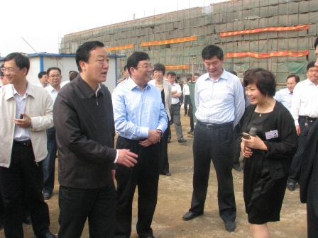 上圖為公司總經(jīng)理李明華(前排右一)在項目建設(shè)現(xiàn)場向市委副書記、市長張務(wù)鋒(前排左二)匯報項目建設(shè)情況