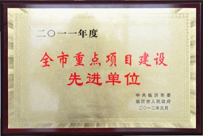 近日,中共臨沂市委、臨沂市人民政府公布了關(guān)于表彰2011年度全市重點項目建設(shè)先進區(qū)縣開發(fā)區(qū)和先進單位的通報,我公司榮獲“2011年度全市重點項目建設(shè)先進單位”榮譽稱號。