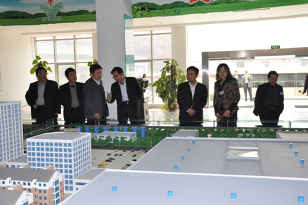 上圖為劉凱一行觀看公司沙盤模型時的情景