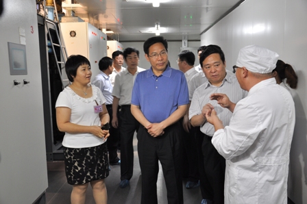 上圖為蘭山區(qū)黨政考察團(tuán)參觀裕欣分廠凍干粉針劑生產(chǎn)車間時(shí)的情景