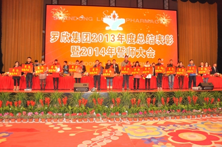 圖為羅欣集團(tuán)2013年度總結(jié)表彰暨2014年誓師大會的場景