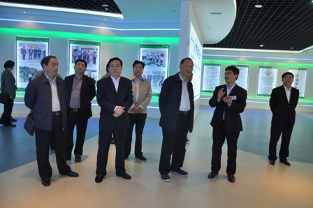 上圖為省經(jīng)信委副主任、黨組成員安勇堅(前排左三)一行參觀我公司展廳的情景
