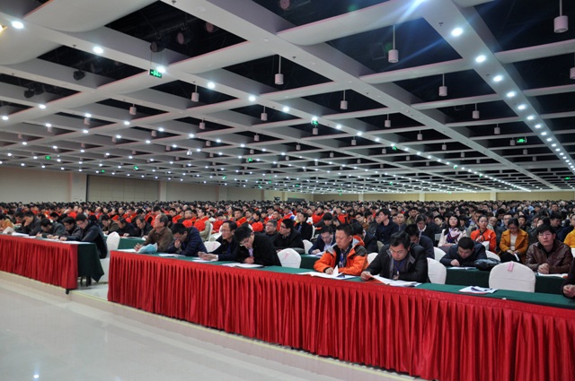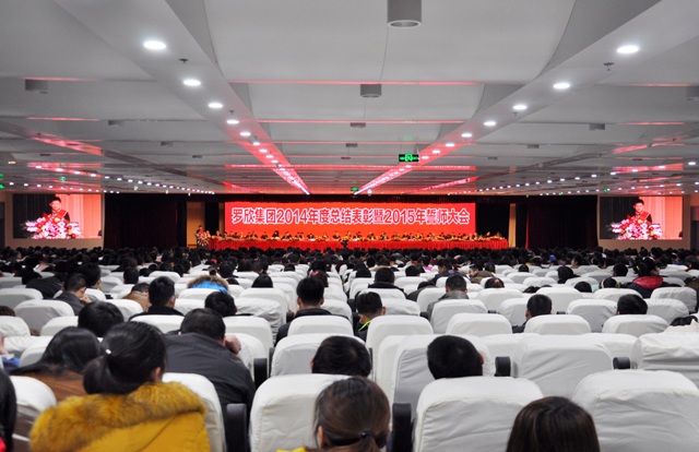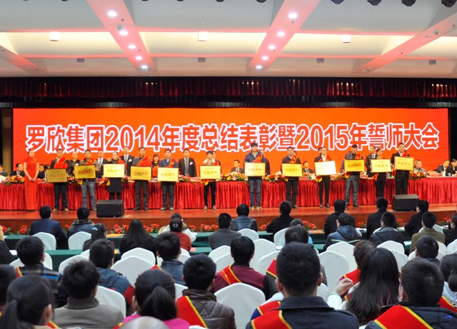 圖為羅欣集團隆重召開2014年度總結(jié)表彰暨2015年誓師大會的場景