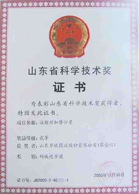 熱烈祝賀山東羅欣藥業(yè)股份有限公司“注射用加替沙星”獲得山東省科技進步獎二等獎。