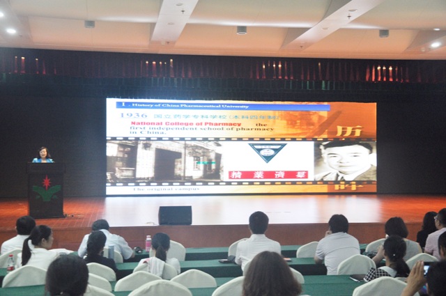 上圖為中國藥科大學(xué)國際醫(yī)藥商學(xué)院院長馬愛霞在羅欣會(huì)堂進(jìn)行宣講時(shí)的情景