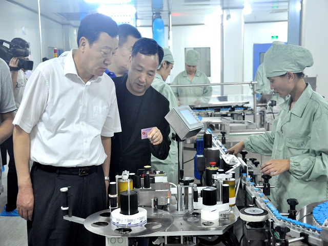 上圖為山東省副省長張務(wù)鋒一行參觀公司生產(chǎn)車間時(shí)情景