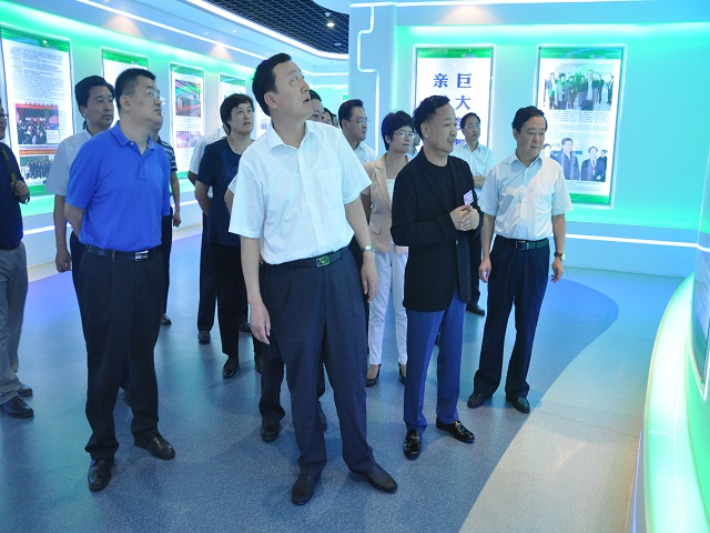 上圖為山東省副省長張務(wù)鋒(前排右四)參觀我公司展廳時(shí)的情景