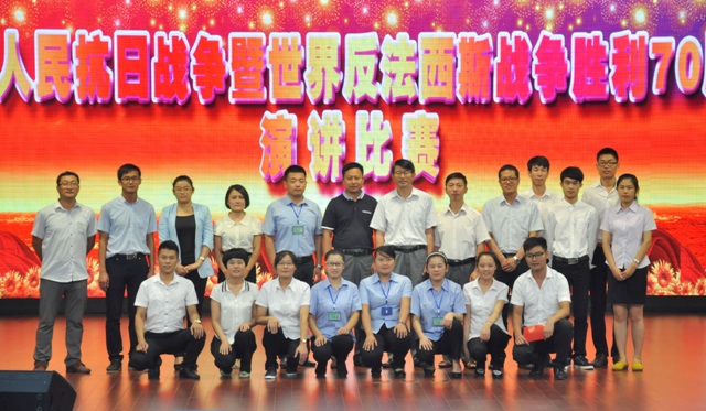 演講比賽在主持人對抗戰(zhàn)歷史的介紹中拉開序幕,選手們以《蒙山情》、《民族的豐碑》、《勿忘歷史,奮發(fā)圖強(qiáng)》、《勿忘國恥 振興中華》等為演講題目,圍繞主題,從不同的角度進(jìn)行了精彩的演講。比賽過程中,選手們個個精神飽滿,演講聲情并茂,慷慨激昂,或揭露日本帝國主義在中國犯下的滔天罪行,或講述中國人民在抗日戰(zhàn)爭中百折不撓、英勇不屈的大無畏精神,或表達(dá)對中國共產(chǎn)黨的無限熱愛和忠誠,或描繪中國夢、羅欣夢的美好前景,精湛的演講技巧和真摯的情感流露贏得了現(xiàn)場觀眾一陣陣熱烈的掌聲。經(jīng)過評委現(xiàn)場認(rèn)真打分,華欣公司代表隊榮獲一等獎,裕欣公司代表隊獲二等獎,1301-1303代表隊、商業(yè)公司代表隊和1906代表隊獲三等獎。
