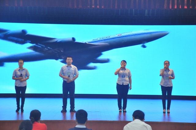 文藝演出在舞蹈《盛世歡歌》的喜慶祝福中拉開了序幕,演出現(xiàn)場亮點紛呈,高潮迭起。在高亢激昂的大合唱《我們走在大路上》、《打靶歸來》及獨唱《又是八月桂花開》中,公司員工用歌聲共同贊頌了我們黨帶領(lǐng)全國人民在中華民族偉大復(fù)興路上的巨大成就。而《蒙山情》、《和平的月光》、《中國魂 ,紅色夢》,則揭露了日本帝國主義在中國犯下的滔天罪行,講述了中國人民在抗日戰(zhàn)爭中百折不撓、英勇不屈的大無畏精神?!段业闹袊摹?、《在那桃花盛開的地方》、《精忠報國》表達(dá)了對黨和祖國的熱愛與贊美,以及中華兒女報效祖國的決心,優(yōu)美的舞姿、精湛的演講、動人的歌聲贏得了現(xiàn)場觀眾一陣陣熱烈的掌聲。
