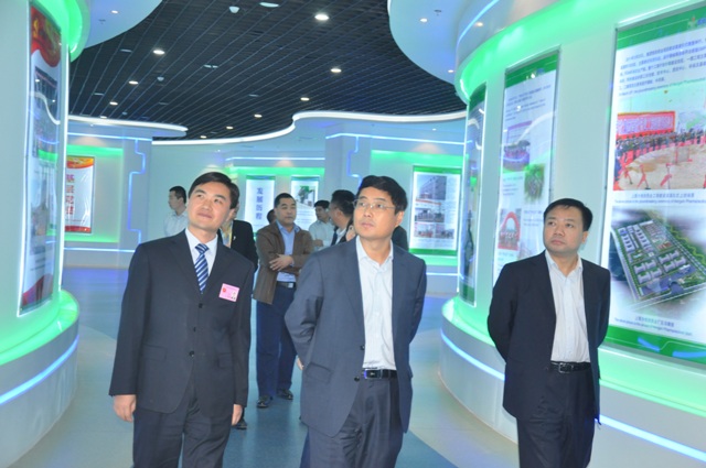 上圖為省食品藥品監(jiān)管局藥品生產(chǎn)監(jiān)管處處長(zhǎng)劉玉東(右二)蒞臨公司展廳參觀考察