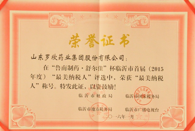 羅欣藥業(yè)堅持“回報社會”的價值觀,自覺承擔(dān)社會責(zé)任,向全社會展示了新時代納稅人誠信納稅、回饋社會的良好形象。羅欣藥業(yè)將繼續(xù)堅持“回報員工”,“回報客戶”,“回報股東”,“回報社會”,“固強企業(yè)”的價值觀,以“羅欣藥業(yè),傳遞健康”的企業(yè)理念,為國家貢獻更多的稅金,積極參與社會扶弱濟貧,為社會安置就業(yè)機會,為廣大患者治療和康復(fù)提供更多、更好的高科技藥品,為發(fā)展醫(yī)藥事業(yè),振興臨沂經(jīng)濟做出更大的貢獻。